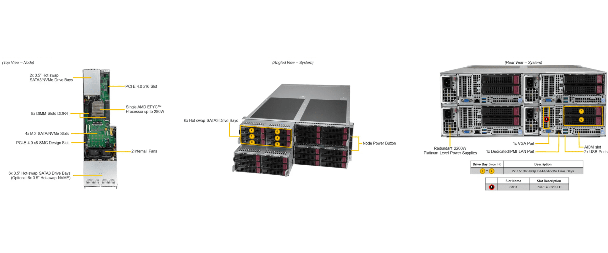 Flexible networking via AIOM (not included, must add 1 per node) |