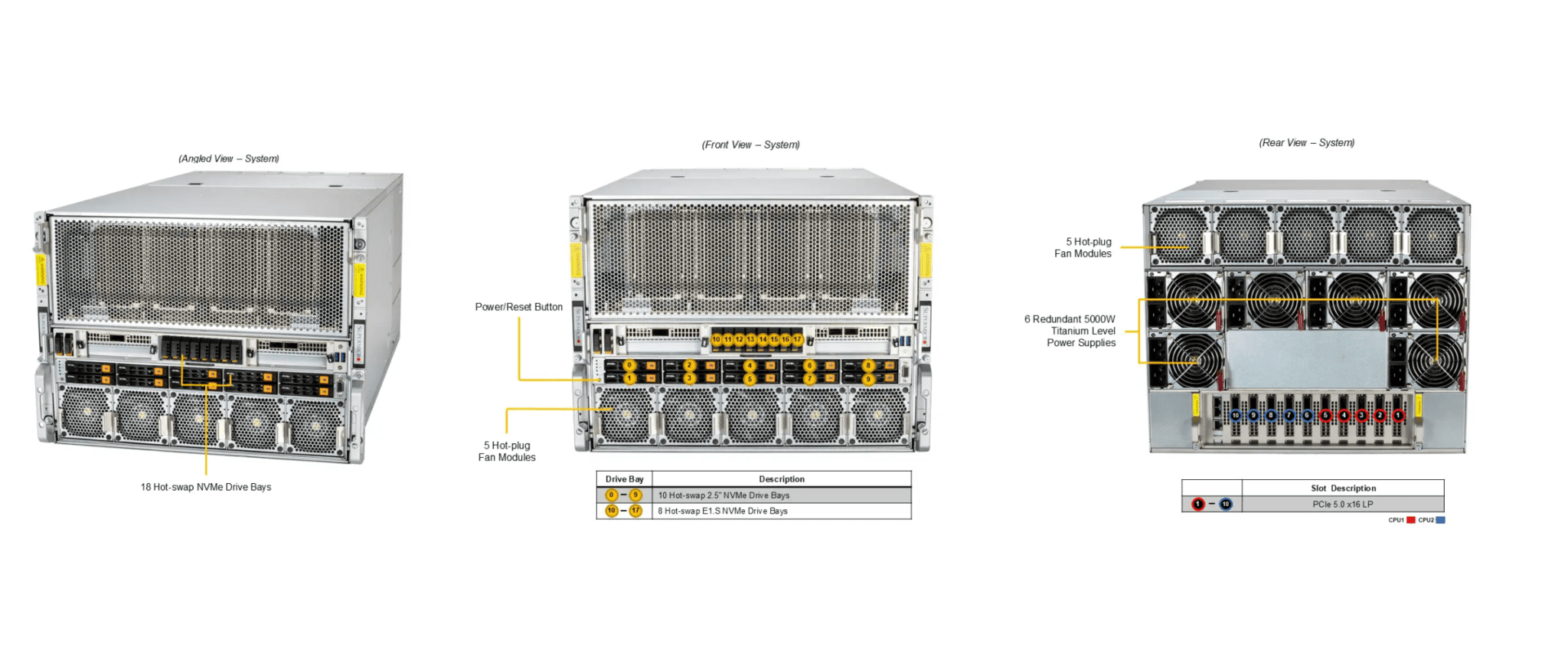 | 6x 5250W Redundant Titanium (certification pending) Level (96%) power supplies | |