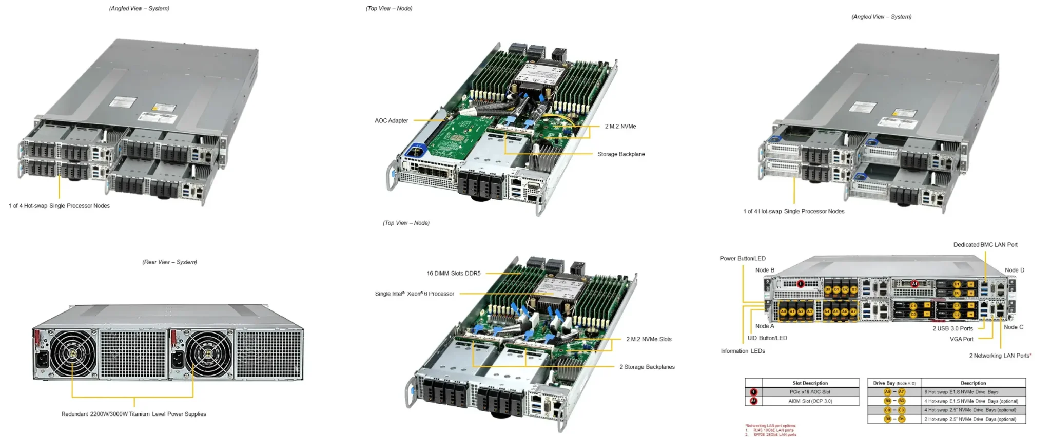 | CPU | Single Socket E2 (LGA-4710) Intel® Xeon® 6700 series processors with E-cores |