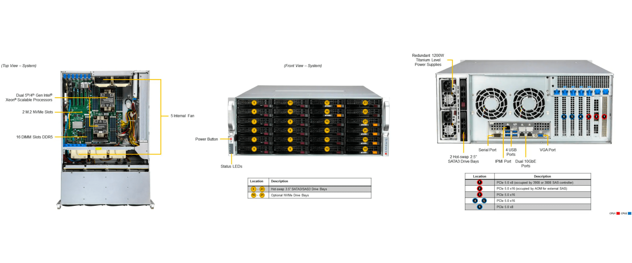 | Note | PCIe slot 1 & 2 are occupied by the Storage Controller/JBOD Expansion Module |